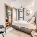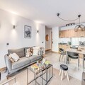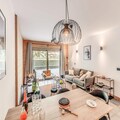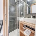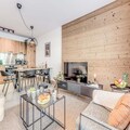 This modern 3-room apartment is part of a new, elegant residence offering stunning views of the Vanoise mountains. With a spacious 67 m² layout, it comfortably accommodates up to 6 guests. The apartment features two double bedrooms, one with a private en-suite shower room, and a mountain corner with 2 bunk beds. It is non-smoking and not pet-friendly, ensuring a peaceful environment for all guests. Amenities include high-speed WiFi, television with internet access, and a heating system for year-round comfort.