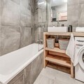 The apartment includes a fully equipped kitchen, ideal for preparing meals, and a bathroom with a bathtub, shower, and toilet. End-of-stay cleaning is mandatory, with the option for daily cleaning at an extra charge. Covered parking spaces are available upon reservation, and a tourist tax applies upon arrival. Wi-Fi access is available for an additional fee, ensuring a convenient and connected stay.