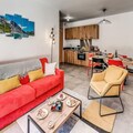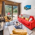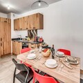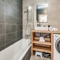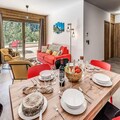 Additional amenities include a fully equipped kitchen with modern appliances, ideal for preparing meals during your stay. The bathroom features a walk-in shower, towel warmer, and complimentary toiletries. A washer and dryer are available for your convenience, and free Wi-Fi ensures you stay connected. Outdoor enthusiasts will appreciate the private balcony or terrace, complete with garden furniture, perfect for unwinding after a day of exploration.