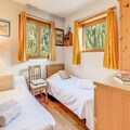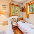 This spacious chalet offers 5 rooms and can accommodate up to 8 people, making it perfect for families or groups. It includes 4 comfortable bedrooms, with two double beds, a bunk bed, and a pull-out sofa bed. The property also features a cozy living room with sofas, a TV, and a fireplace, ideal for relaxing after a day outdoors. A baby chair and bed are available for families with young children. Pets are not allowed, and the chalet is a non-smoking space.