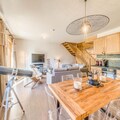 This spacious 4-room duplex apartment can accommodate 8 to 10 guests, making it perfect for larger families or groups. It features three comfortable bedrooms, including one with three double beds, as well as a sofa bed in the living room. The apartment is non-smoking and pets are not allowed. Enjoy modern amenities such as free WiFi, flat-screen TVs, and luxurious linens with beds made upon arrival. A refundable deposit of €2500 is required at check-in.