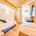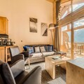 This spacious 72 m² apartment, located on the 5th floor, is designed to accommodate up to 8 guests. It features three comfortable bedrooms, each with ample storage, and two bathrooms with modern amenities. The apartment is non-smoking and not pet-friendly, ensuring a clean and fresh environment for all guests. The living area is perfect for relaxation, with a sofa bed, flat-screen TV, and DVD player, all facing a large balcony with stunning views of the village and Vanoise Massifs. Bed sheets, towels, and WiFi are included, along with end-of-stay cleaning (except the kitchen).