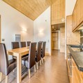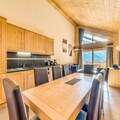 The apartment comes with a fully equipped kitchen, including a refrigerator with freezer, combined oven, ceramic hob, and coffee machines. It also features a dining area with a table for 8, perfect for enjoying meals together. Additional amenities include a washer/dryer, towel dryer, hair dryer, and separate WC. A ski locker is available for your convenience, ensuring easy access to your gear after a day on the slopes.