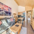 This spacious apartment in a charming chalet offers comfortable accommodations for up to six guests. It features two separate bedrooms, including a double bed and two single beds, perfect for families or small groups. The living room includes a sofa bed, ideal for additional guests. The apartment is non-pet-friendly and non-smoking, ensuring a peaceful environment. Bed linens and towels are provided, and the beds are made upon arrival. WiFi is available throughout the apartment, and each apartment includes an individual ski locker for your convenience.