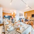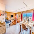 This spacious 93m² apartment, located in a charming hotel residence, comfortably accommodates up to 8 people. It features 3 bedrooms: 2 with double beds (160x200), and 1 with 2 bunk beds, a single bed, and drawer bed. The apartment includes 2 bathrooms with WC, a large living room with a dining area, and a furnished south-facing balcony with panoramic views. The property is non-smoking, and pets are not allowed. Bed and bathroom linens are provided, with beds already made upon arrival.