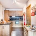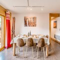 The apartment is equipped with a fully functional kitchen, including a refrigerator, combined oven, ceramic hob, dishwasher, Nespresso coffee machine, kettle, and toaster. Additional amenities include a washing machine/dryer, TV with DVD player, and free Wi-Fi. For families, optional services like baby beds and chairs are available. The residence also has a ski locker, ensuring convenience for winter sports enthusiasts.