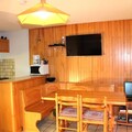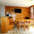 Inside the apartment, you’ll find all the comforts of home, including a fully equipped kitchenette, a dining area, and a living room with a television. Additional services like a Wi-Fi mini box, baby bed, and chair are available upon request, as well as end-of-stay cleaning. Sheets and towels are also available for an extra fee. A ski locker is conveniently located on the ground floor, providing easy storage for your ski gear. This non-smoking apartment is the perfect choice for a relaxing and convenient stay in the mountains.