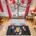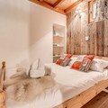 This spacious 4-room apartment with mezzanine is designed for 6-7 people, offering a cozy and comfortable stay. It features a small bedroom with a double bed, two additional bedrooms (one with a double bed and another with bunk beds), and a futon-style bed in the mezzanine. The apartment is non-smoking and does not allow pets. Enjoy the convenience of modern amenities such as Wi-Fi, bed sheets, towels, and end-of-stay cleaning (excluding the kitchen). A ski locker is available on the ground floor for your ski gear.