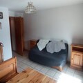This cozy and well-appointed apartment offers an ideal retreat for up to six guests. It features a comfortable bedroom with a double bed, an entrance area with foldable bunk beds, and a living room with a sofa bed. The apartment also includes a modern shower room, separate toilets, and a sunny south-facing balcony that provides stunning views of the village and surrounding mountains. Please note that pets are not allowed, and the property is non-smoking.