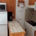 The apartment is equipped with all the essentials for a comfortable stay, including a kitchenette with a dishwasher, oven, microwave, and refrigerator. Guests will also find a coffee maker, toaster, kettle, and all necessary crockery for convenient meal preparation. Additional amenities include a ski locker, television, and optional services like WiFi and baby equipment for a small fee. With its sunny balcony and excellent location, this property offers a relaxing mountain getaway.