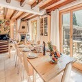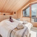 This spacious 7-room chalet can accommodate up to 12 people, offering ample space for family or group vacations. It includes 4 bedrooms, each furnished with comfortable double or bunk beds, and features 3 modern bathrooms with showers, toilets, and sinks. Pets are not allowed, and a deposit of €3000 is required. The chalet is non-smoking, providing a comfortable and relaxing environment. The chalet boasts a large terrace with stunning panoramic views of the surrounding mountains, including the Pralognan glaciers and Courchevel villages.