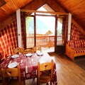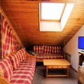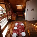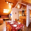 The well-equipped kitchenette includes everything needed for convenient meal preparation, such as a dishwasher, microwave, oven, and a small freezer. The dining area features a table with seating for all, while the living room invites relaxation with plush sofas and a television. Additional amenities include a washing machine, ski lockers, and optional Wi-Fi. This delightful apartment promises a memorable stay with all the comforts of home.