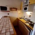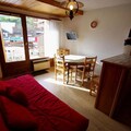 This cozy apartment, located on the first floor of a six-story residence, is ideal for 4-5 people. It features a double bed in a cabin, two bunk beds in the entrance, and a sofa bed in the living room. The apartment is non-smoking and allows pets with an additional fee. The bathroom includes a bathtub, and there is a separate toilet. A south-west facing balcony offers lovely views of the village and mountains, and the apartment is equipped with ski storage for your convenience.