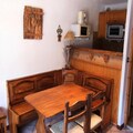 This charming 2-room apartment, located on the 3rd floor of a residence in the heart of the village, is perfect for up to 5 guests. It features a bedroom with a double bed and pull-out beds, as well as a mountain corner with bunk beds, ensuring comfortable sleeping arrangements for the whole family. The living area includes a sofa bed for 2 people and a dining space. The apartment offers a south-east-facing balcony with stunning views of the village square and surrounding mountains. Pets are welcome for an additional charge, and services such as Wi-Fi, baby equipment, and end-of-stay cleaning are available upon request.