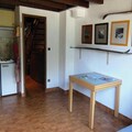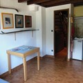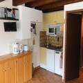 Inside, the apartment features a fully equipped kitchenette with a dishwasher, washing machine, oven, electric hob, and fridge, along with all necessary crockery. The spacious living area includes a dining space and a sofa for relaxation. The bathroom and separate toilet are on the first floor, while the second-floor under-roof bedroom adds to the charm and coziness of the space.
