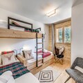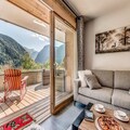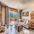 This newly built 3-room apartment in a 4-star residence combines modern comfort with stunning alpine charm. Designed for up to 7 guests, it features a living room with a convertible sofa bed, a master suite with a 160 cm double bed and en-suite bathroom, and a second bedroom with three single beds, including a bunk bed. A spacious 22.6 m² terrace with garden furniture and deckchairs provides breathtaking south-east views of the Pralognan valley and Champagny village. The property is non-smoking and does not allow pets, ensuring a serene and clean environment.