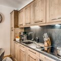 The apartment includes a fully equipped kitchen with induction hob, microwave, dishwasher, and specialty appliances like a raclette machine. Additional conveniences include a washer-dryer, heated ski locker, and covered parking. Essential services like Wi-Fi, bed linens, towels, and end-of-stay cleaning (excluding the kitchen) are included. A refundable €1,500 deposit ensures a worry-free stay.