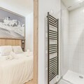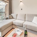 This elegant 4-star apartment offers a luxurious retreat for up to eight guests. The cozy living room features a pellet stove and comfortable seating, while three spacious bedrooms provide a mix of double and single beds, all with built-in storage and TVs. The apartment includes a modern bathroom with a washer/dryer, a separate toilet, and two sunny balconies with stunning south-east views. Please note that pets are not permitted, and the property is non-smoking. Beds are made on arrival, and high-quality linens and towels are provided.