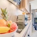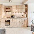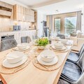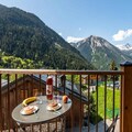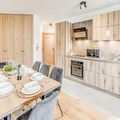 The apartment is fully equipped for your comfort, with a modern kitchen featuring an oven, microwave, induction hob, refrigerator, freezer, and dishwasher. Additional amenities include free WiFi, covered parking with bike storage, and electric vehicle charging options. The spacious dining area with a large wooden table and leather chairs makes it perfect for family meals or gatherings after a day of exploring the mountains. End-of-stay cleaning (excluding the kitchen) is included for a seamless experience.