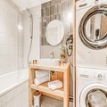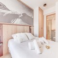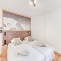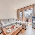 The apartment comes with a fully equipped kitchen, including an oven, microwave, induction hob, fridge, freezer, and dishwasher. It also features a bathroom with a washer/dryer, a separate toilet, and underfloor heating. Complimentary Wi-Fi, bed and bathroom linens, and ski lockers are included, along with bike storage and electric vehicle charging options.