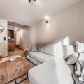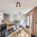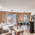 The apartment features a fully equipped kitchen with modern appliances, a washer/dryer in the bathroom, and a ski locker with a shoe warmer. Covered parking with charging points for e-bikes or electric vehicles is available, and baby equipment can be rented for an additional fee.