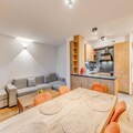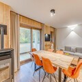This luxurious 3-room apartment in a newly opened 4* residence accommodates up to 6 guests. It features two double bedrooms, one with an en-suite bathroom and a washer/dryer, and the other with a private shower room. The spacious living room includes a double sofa bed, pellet stove, and TV. The apartment is non-smoking, pets are not allowed, and bed linens, towels, and final cleaning are included. A €1,500 security deposit is required at check-in.