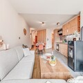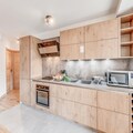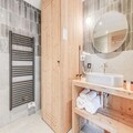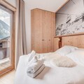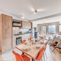 This modern 4* apartment, part of a new residence, is designed to comfortably accommodate up to 6 people. It includes a spacious living room with a pellet stove (pellets not provided), a dining area, and a fully equipped kitchen. The apartment has two cozy bedrooms, one with a double bed and the other with two single beds, both offering direct access to private balconies. A double sofa bed in the living area adds extra sleeping space. The apartment is non-smoking and pets are not allowed. A separate bathroom with a washer/dryer and a separate toilet are also available for convenience.