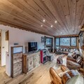 The apartment is equipped with a fully modern kitchen featuring a central island, ideal for preparing meals. The living area opens to a sunny balcony with deckchairs, perfect for relaxing. Additional amenities include a washing machine, dryer, and ski storage. For those with electric bikes or cars, the residence provides charging facilities. The residence also includes an indoor pool and sauna, opening in December 2023, enhancing your stay with relaxing options.