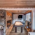 This modern 4-star apartment, part of a new residence, offers a luxurious stay for up to 12 people. The apartment features five spacious bedrooms, including a master suite with a double bed and en-suite bathroom. Other bedrooms are equipped with double beds and adjoining shower rooms. For added convenience, the apartment includes two TVs, a large corner sofa, a billiard table, and free Wi-Fi. Pets are not allowed, and smoking is prohibited on the premises. A pellet stove is provided, though pellets are not included, and covered parking spaces are available for guests.