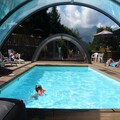 The residence boasts a range of amenities designed for your comfort and enjoyment. Take a refreshing dip in the semi-covered heated swimming pool, open from July to September, or soothe your muscles in the communal sauna after an active day. For sports enthusiasts, there's a tennis court and a pétanque court to enjoy. The chalet itself, arranged as a duplex, comfortably accommodates 5 to 7 guests. It features a living room with a sofa bed for two, an open-plan kitchen, a double bedroom, and an attic bedroom with two single beds. With two shower rooms, separate toilets, and a private terrace, the layout ensures both practicality and comfort.