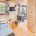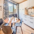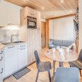 At the heart of the charming village of Champagny-en-Vanoise, this beautifully renovated apartment offers a seamless blend of modern comfort and alpine charm. Perched on the fourth floor of the six-story Le Centre residence, it provides breathtaking views of the village square and surrounding mountains from its south-facing balcony. Whether you're here for a winter ski adventure or a summer mountain escape, this property invites you to immerse yourself in the beauty of the French Alps. \n\nThe apartment, part of the CHAMPAGNY PREMIUM range, is thoughtfully designed to accommodate up to four guests. Its cozy layout includes a north-facing bedroom with bunk beds, a stylish bathroom with a walk-in shower, and a separate toilet for added convenience. The living area features a fold-out double bed, a sofa bed, and a TV, creating a welcoming space to relax after a day of exploration. The open kitchen is fully equipped with modern appliances, including a dishwasher, oven, and coffee maker, ensuring you have everything needed to prepare delicious meals. A new bay window floods the space with natural light and opens onto the balcony, perfect for enjoying your morning coffee or evening wine. \n\nLe Centre residence offers exceptional amenities, including an elevator, ski lockers, and direct access to the cable car and ESF ski school. Shops on the ground floor make it easy to stock up on essentials or indulge in local specialties. In winter, the slopes are just moments away, while summer brings opportunities for hiking, cycling, and exploring the stunning landscapes of the Vanoise National Park. \n\nWith hotel services like bed linen, towels, and end-of-stay cleaning included, this apartment ensures a hassle-free stay. Whether you're seeking adventure or tranquility, this property is your gateway to unforgettable alpine memories.