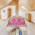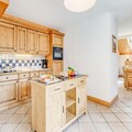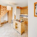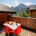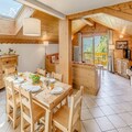 The spacious 4-room duplex apartment accommodates up to eight guests, making it ideal for families or groups. On the ground floor, you'll find a welcoming entrance hall, a suite with a double bed and private shower, and a fully equipped kitchen that opens onto a sunny terrace. The living room features a cozy lounge area with TV and two sofas that double as single beds, complemented by skylight windows and a southwest-facing balcony. Upstairs, two bedrooms with flexible bedding options and private balconies, along with a bathroom, complete the layout. Modern amenities such as Wi-Fi, a private garage, and ski lockers ensure convenience, while the included bed linens and end-of-stay cleaning add a touch of luxury.