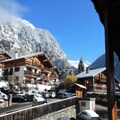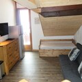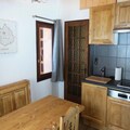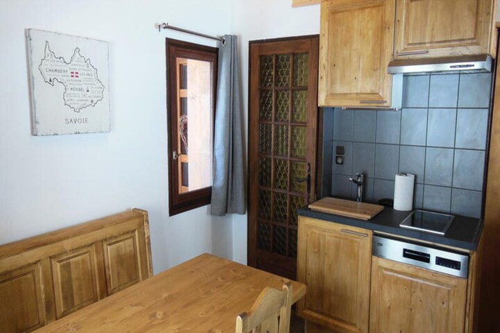 In the serene charm of the French Alps, Chalet Fleur de Neige offers a tranquil retreat just 400 meters from the vibrant village center. Surrounded by private grounds in a peaceful residential area, this detached chalet, beautifully renovated in 2017, invites you to experience alpine living at its finest. With breathtaking views of the mountains, the village, and Courchevel from its balconies, every moment here feels like a postcard come to life. Whether you’re sipping coffee at sunrise or unwinding after a day of adventure, the chalet’s ambiance is sure to captivate your senses. \n\nThe apartment, located on the first floor under the eaves, is thoughtfully designed to accommodate up to five guests. Its 35 m² layout includes a cozy living room with trundle beds, a fully equipped kitchenette featuring modern appliances like a dishwasher and microwave, and a spacious bedroom with a comfortable double bed. The dining area opens onto a balcony, perfect for enjoying fresh mountain air. Guests can also benefit from free Wi-Fi and communal parking right in front of the chalet, ensuring convenience throughout their stay. For larger groups or families, the option to rent the neighboring apartment adds flexibility and comfort. \n\nJust a short walk away, the village center offers shops, the cable car, and the renowned ESF ski school, making it an ideal base for winter sports enthusiasts. In summer, the region transforms into a haven for hikers and nature lovers, with trails that showcase the beauty of the Alps. Whether you’re exploring Courchevel or simply soaking in the serene surroundings, Chalet Fleur de Neige is the perfect choice for an unforgettable alpine getaway.