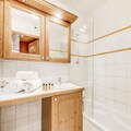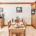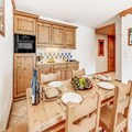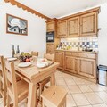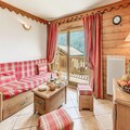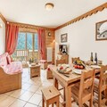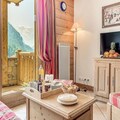 Inside, the apartment is thoughtfully designed to accommodate up to six guests across two cozy bedrooms and a pull-out sofa bed in the living room. The south-facing balcony invites you to soak up the sun while savoring the majestic mountain vistas. A fully equipped kitchen opens onto a warm and inviting living space, perfect for unwinding after a day of alpine exploration. Modern amenities such as Wi-Fi, TV, and a private ski locker ensure convenience and comfort throughout your stay. Guests also enjoy access to the residence's swimming pool, gym, and spa facilities, including a hammam and sauna, adding a touch of luxury to your holiday.