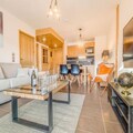 The 2-room apartment, spanning 42m², is thoughtfully designed to accommodate up to four guests. The living room features a comfortable sofa bed, a flat-screen TV, and a large bay window that opens onto a furnished balcony, where you can soak in the sun and admire the panoramic views. The fully equipped kitchen, complete with a Nespresso machine, raclette set, and modern appliances, invites you to prepare delightful meals to enjoy in the dining area. The double bedroom offers a restful haven, while the bathroom is equipped with a shower, towel dryer, and washing machine for added convenience.