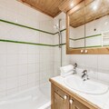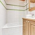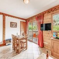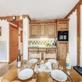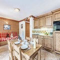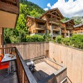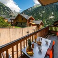 Each apartment is thoughtfully designed with comfort and convenience in mind. The garden-level unit accommodates up to four guests and features a cozy bedroom, a modern bathroom, and an open-plan kitchen and living area with a pull-out sofa bed. Step out onto the east-facing balcony to enjoy your morning coffee while gazing at the alpine landscape. Guests benefit from premium amenities, including Wi-Fi, a private garage, and complimentary bed and bathroom linen. The residence also boasts a heated swimming pool, a spa with hammam and sauna, and a fitness center, ensuring relaxation after a day of adventure.