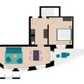 The spacious bedroom is furnished with a high-quality double bed, which ensures a restful night's sleep. The soft lighting and coordinated colours create a cosy atmosphere in which to relax after an eventful day.