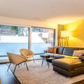 The 3.5-room flat on the 1st floor offers two bedrooms with a comfortable double bed (180x200cm), a sofa bed in the living room for one person, a bathroom with shower and WC and a bathroom with bathtub and WC on 120m2. The modern, high-quality and well-equipped kitchen opens onto the spacious living and dining area with a balcony offering a fantastic mountain view.