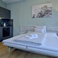 The bedroom is furnished with a comfortable double bed (160cm x 200cm) to ensure a good night's sleep. The soft lighting and coordinated materials create a calm and relaxing atmosphere that is ideal for a restful night's sleep.