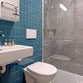 The bathroom is equipped with an elegant shower and WC. The modern tiles and high-quality furnishings give the room a pleasant atmosphere.