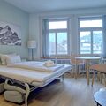 The historic building, once an imposing bank, is located in the heart of the vibrant centre of Interlaken and is just a few steps away from Interlaken West train station. The bus station is just a few metres from the entrance.