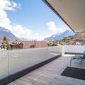 The 99m2 3.5-room penthouse flat offers two bedrooms with comfortable double beds (180x200cm), a bathroom with shower and WC and a bathroom with bathtub and WC. The modern, high-quality and well-equipped kitchen opens onto the spacious living and dining area with a balcony offering a fantastic mountain view.