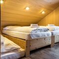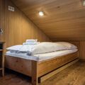 The comfortably furnished 1-room maisonette apartment is decorated with lots of wood and attention to detail. On the ground floor there is a living and dining area with a fireplace for cozy hours, a well-equipped kitchen and a bathroom with shower/toilet. On the upper floor, which can be reached via a steep staircase, there is a small, open room with two single beds and another open room with a single bed. There is also the option to book an extra bed for an additional person in both rooms. The cottage can therefore be booked for 1-5 people. The open bedrooms are located in the sloping roof and the ceiling height in both rooms is 50-170 cm.