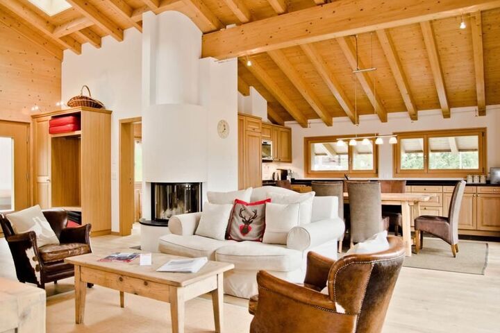 The 4.5-room penthouse (118m2) in a modern alpine style offers a holiday with far-reaching views. It has one bedroom with a double bed, two bedrooms with two single beds each, a bathroom with bath and toilet and a bathroom with shower and toilet. The modern kitchen opens onto a spacious living area with a Scandinavian stove and a large balcony with views of the Eiger North Face. The lift takes you directly from the garage to the apartment.