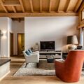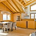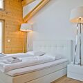 The 147m2 4.5-room apartment on the top floor chalet has three bedrooms with double bed, a bathroom with bath, shower and toilet, a bathroom with bath and toilet and a separate toilet. In the spacious, bright living/dining area with open kitchen and fireplace you can enjoy a relaxing holiday. From the large balcony you can enjoy panoramic views of the mountains.