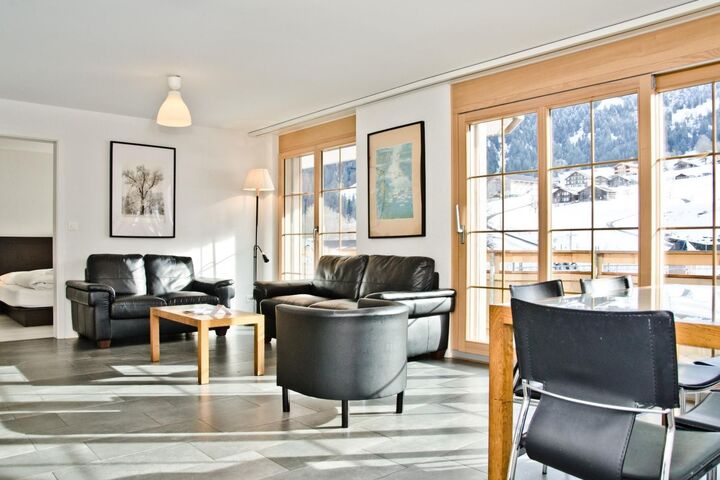 Bright, practical, and close to the slopes – the modern 4.5-room apartment is on the 1st floor and has a large balcony with a fantastic view of the Eiger North Face. On 100m2 there are two bedrooms with double beds, one bedroom with two single beds, one bathroom with bath and toilet and one bathroom with shower and toilet. The living/dining area is directly connected to the practical kitchen. A lift takes you directly from the garage to the front door.