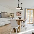 The 77m2 3.5-room apartment on the ground floor offers modern luxury. It has two bedrooms with double beds, a bathroom with bath, shower and sauna, and a separate toilet. The apartment has a modern, well-equipped kitchen with a bright, cosy dining/living area. From the terrace you can enjoy the beautiful mountain panorama.