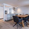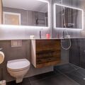 This modern 4.5-room apartment with a lot of charm and cachet is located on the upper floor. Two bedrooms with double beds, one bedroom with bunk beds, a bathroom with shower and toilet and a separate toilet are spread over 118m2 of living space. You can live, cook and eat in the modern, well-equipped kitchen and in the open living/dining area. You can enjoy relaxing moments on the balcony with views of the mountains.