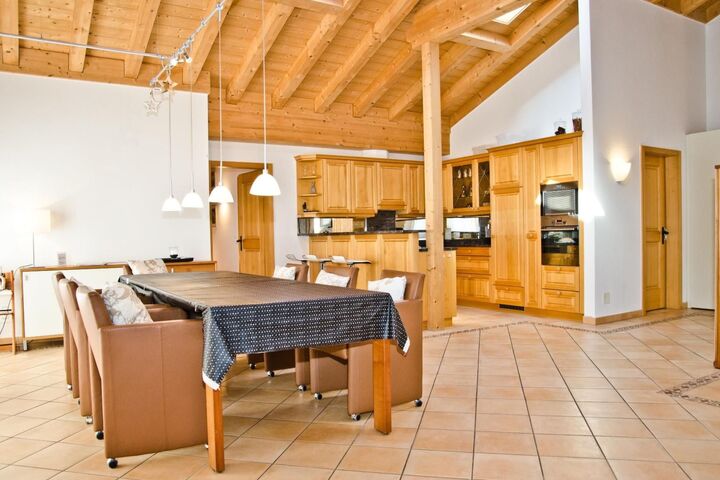 The luxurious 140m2 4.5-room attic apartment offers everything you need for a relaxing holiday. It has two bedrooms with double beds, one bedroom with two single beds, two bathrooms with shower and toilet and one bathroom with bath and toilet. The modern kitchen opens onto a cosy dining/living area with fireplace. The lift takes you directly from the underground garage to the apartment. The balcony offers a great view of the Eiger North Face.