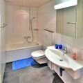 The bathroom is equipped with a bathtub, washbasin and toilet.